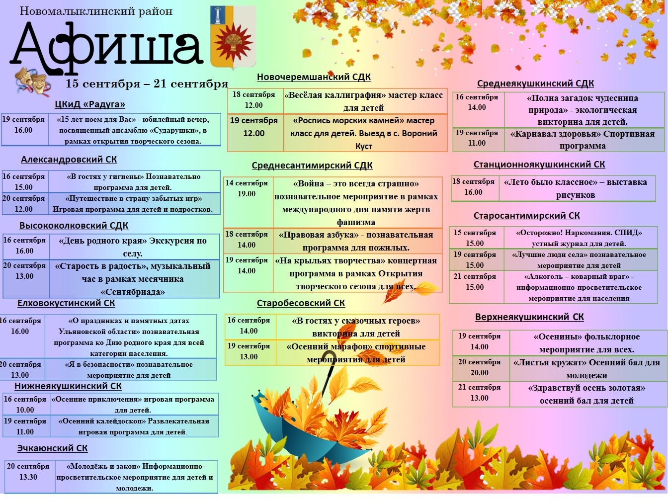 Афиша мероприятий Новомалыклинского района